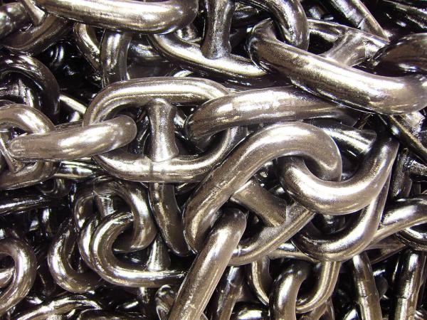 Stud link chain is normally supplied in 'shot lengths' (27.5mtrs long) which can then be joined together using a Kenter shackle. Black bitumastic paint or galvanised finishes are available.